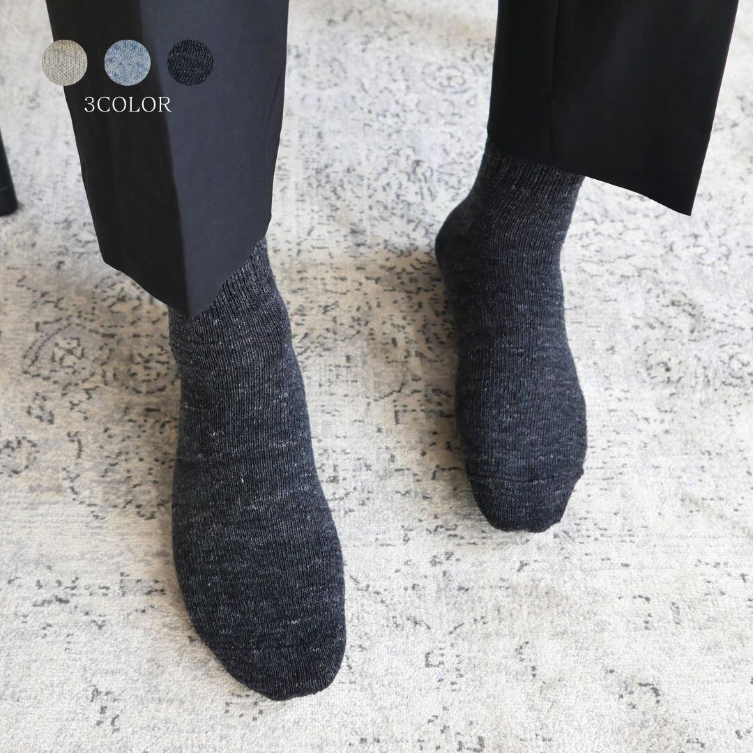 ・履いてごわつかないようにシルクとリネンの間に通常使用するよりも半分以下の極細の伸縮糸を使用し履き心地の良さと天然素材90%以上を実現しました。